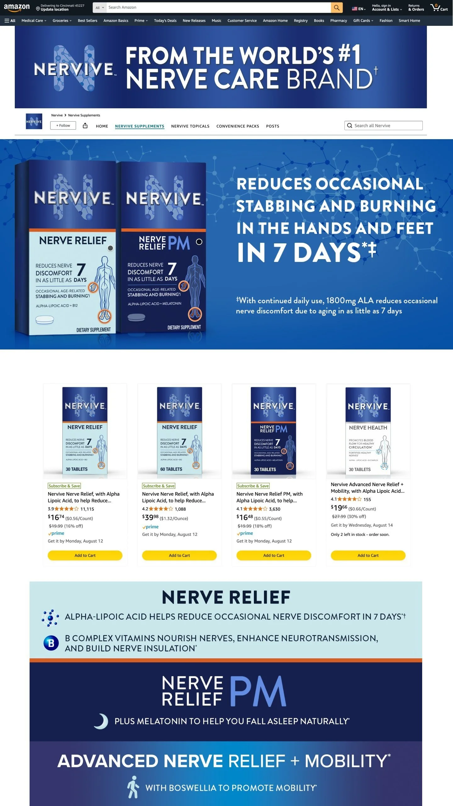 Nervive refreshed its branding and wanted e-commerce assets to match. My team reassessed the entire Amazon storefront layout, incorporating more educational content based on consumer feedback to improve the customer experience.